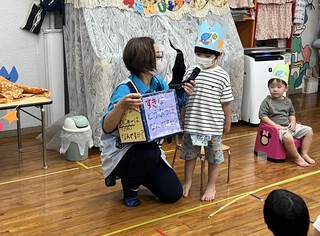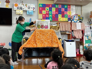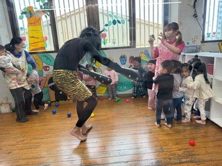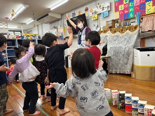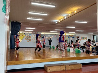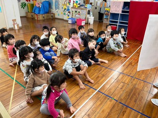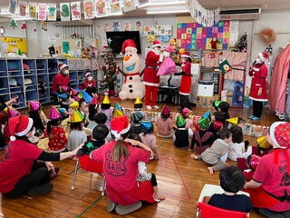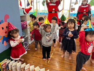 紙芝居やダンスを楽しみ、サンタさんからのプレゼントもありました。