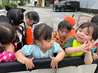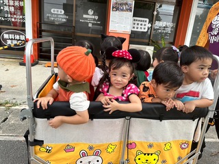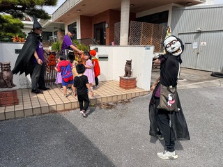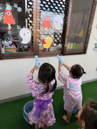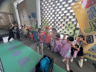 おばけが保育園に遊びに来ていたので仮装してお菓子をもらいました。